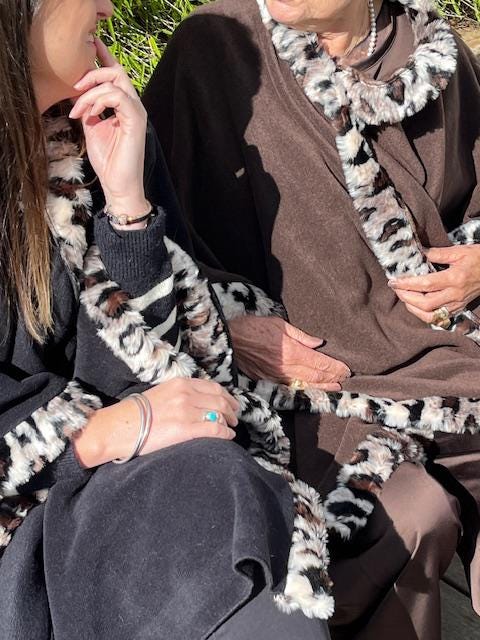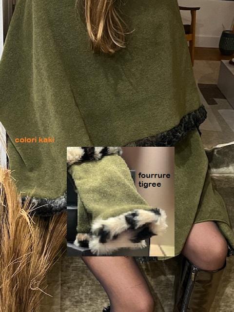 Women's poncho in thick and very warm fleece with faux tiger fur - made in France -