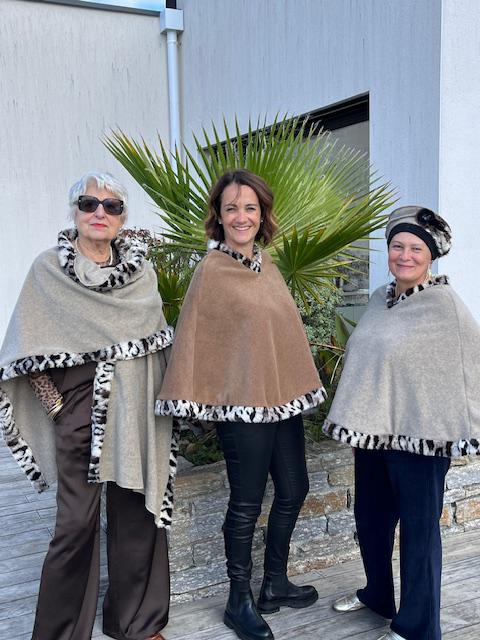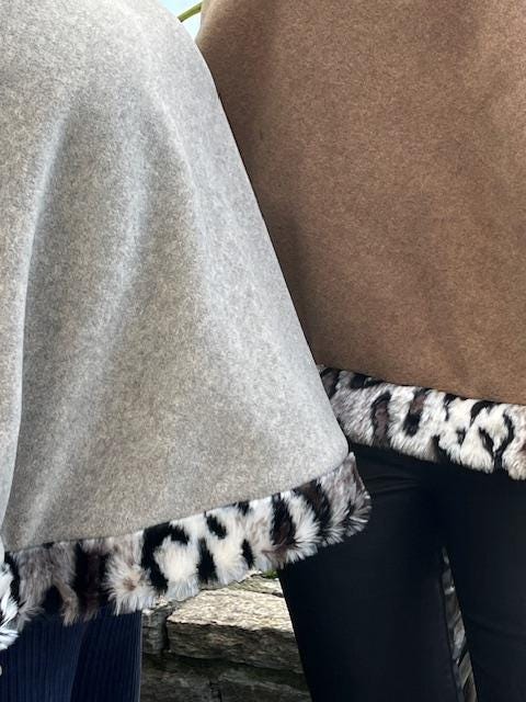 This cape, made entirely of fleece and trimmed with faux fur, can accompany you throughout the day.
