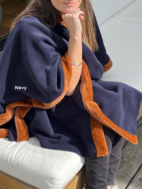 Women's poncho in thick and very warm fleece with faux fur - made in France -