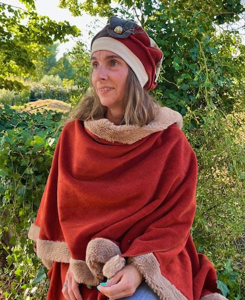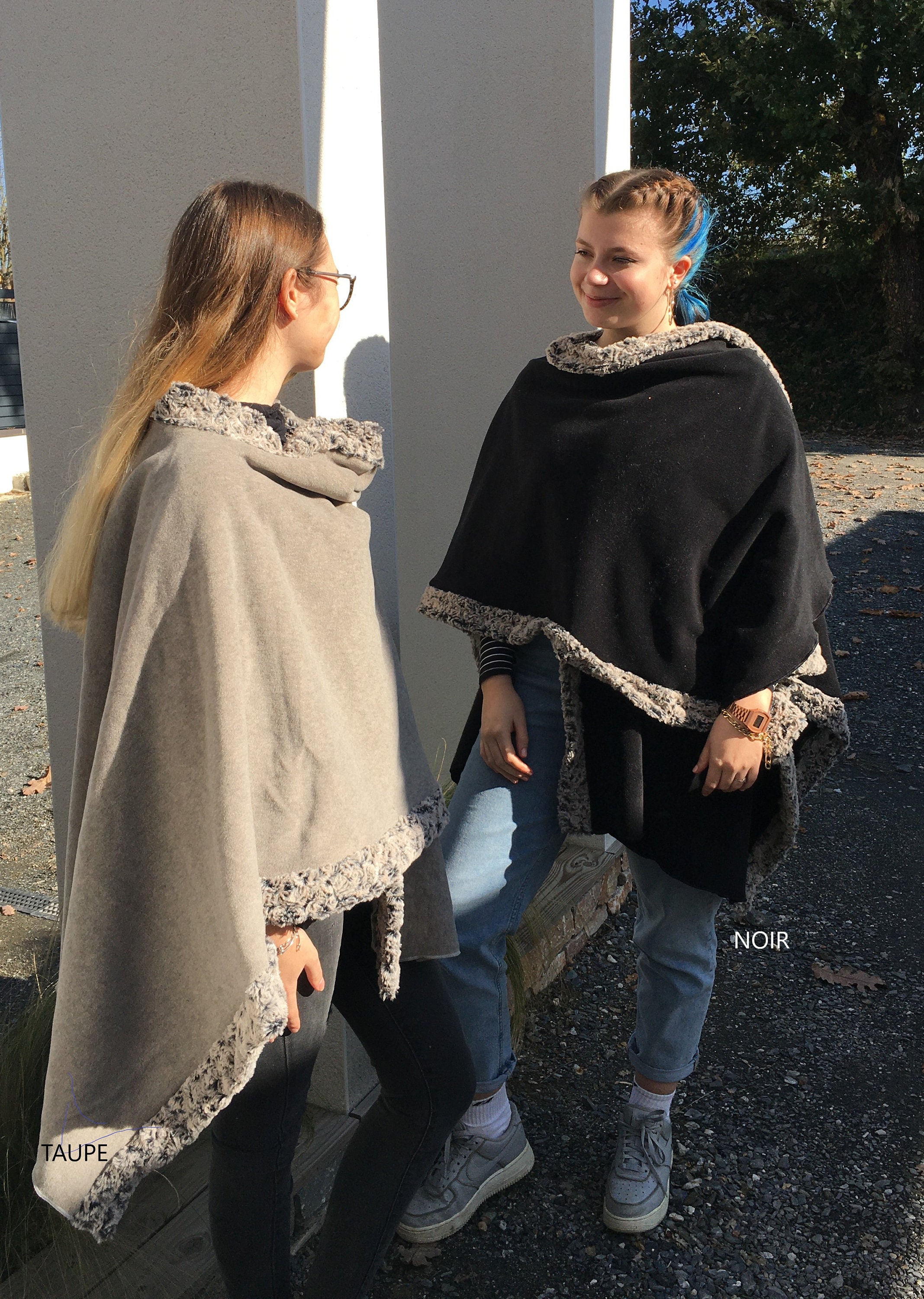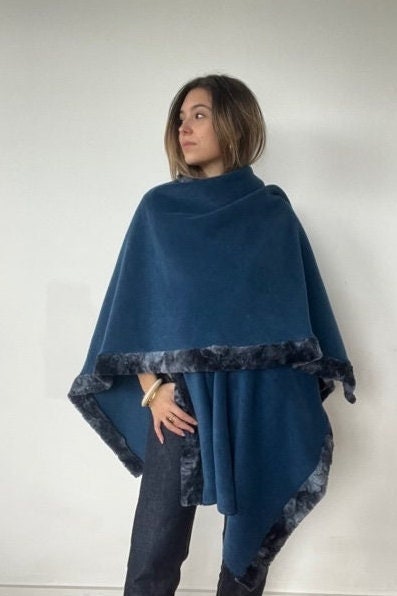 Women's poncho in thick and very warm fleece with faux fur - made in France -