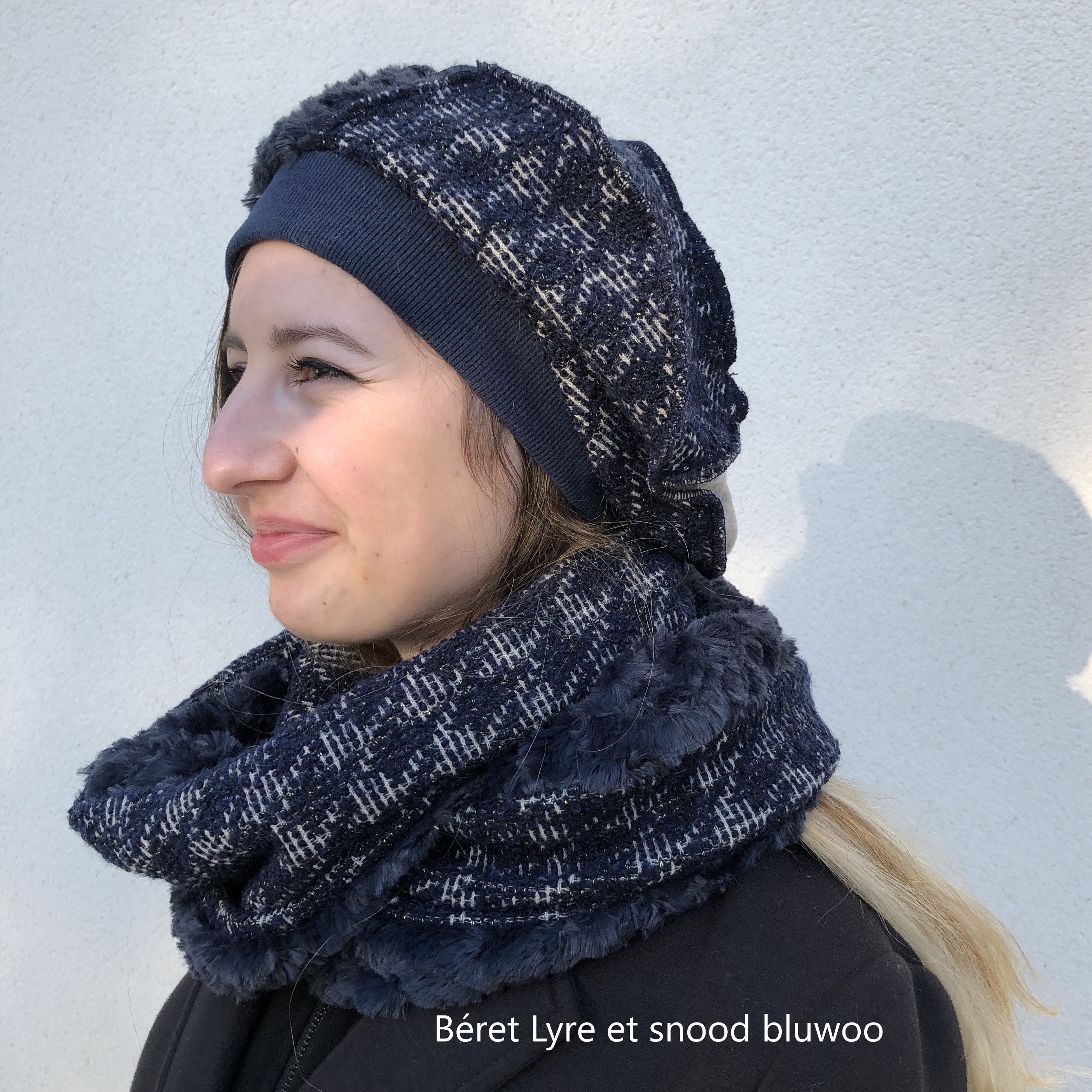 The Lyre beret, with its different cut (two fabric heights), offers several styling options.